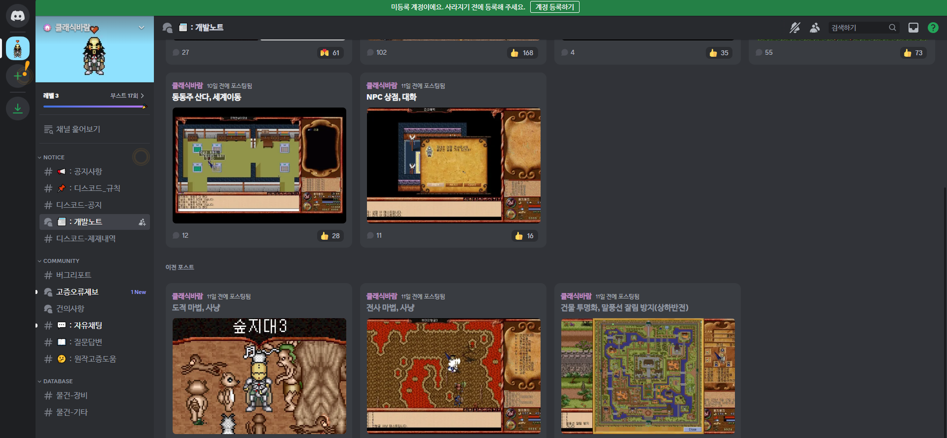 클래식 바람에 대한 공지사항, 개발노트, 버그리포트, 고증오류제보, 자유채팅, 질문답변, 장비 및 기타 장비의 데이터 베이스 등 다양한 정보를 확인하실 수 있습니다.