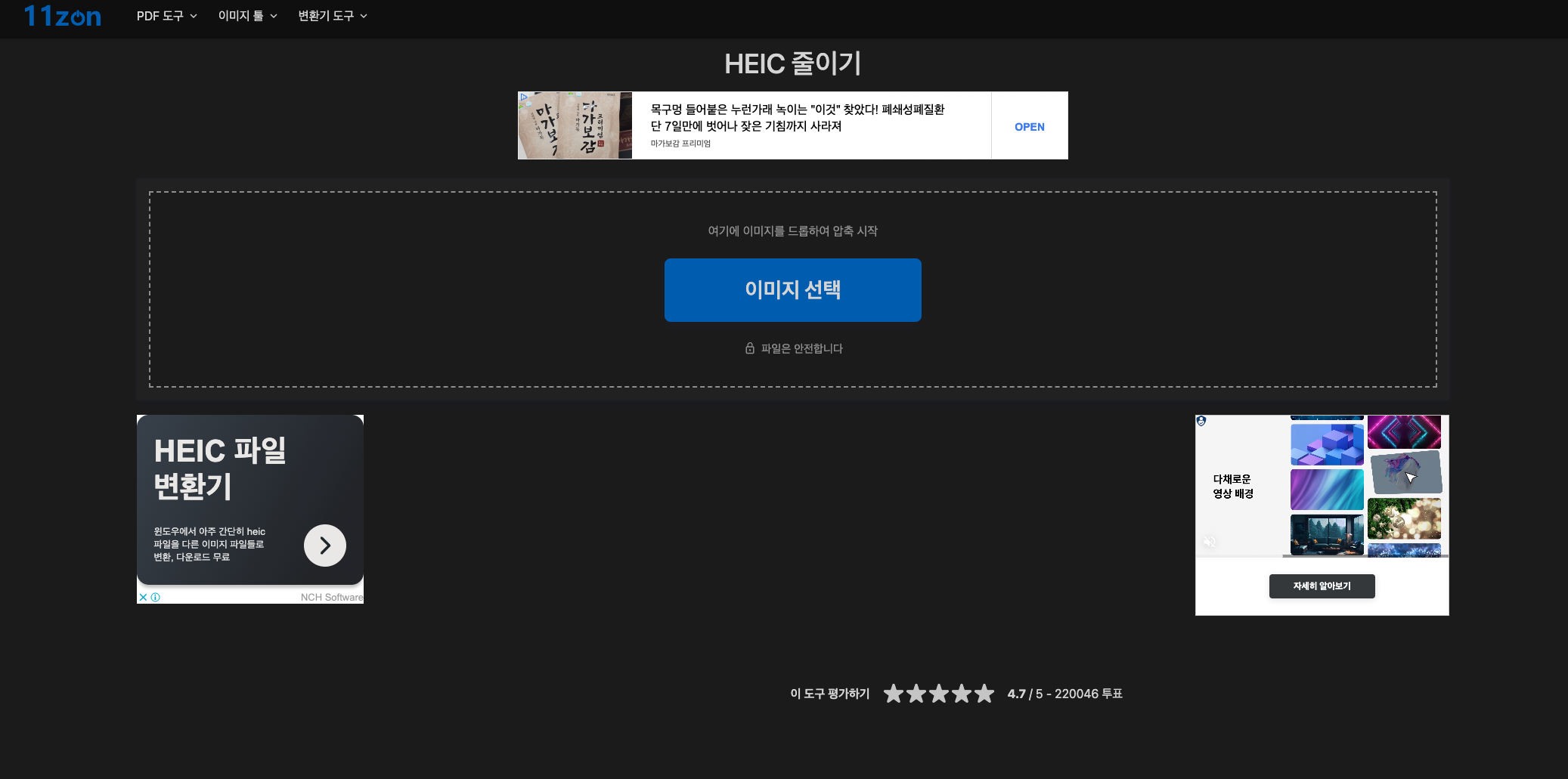 첫 번째로 소개해 드리는 아이폰 사진 용량 줄이는 방법은 “11zon”홈페이지에서 제공하는 heic 용량 줄이기 툴을 이용하시는 방법입니다.