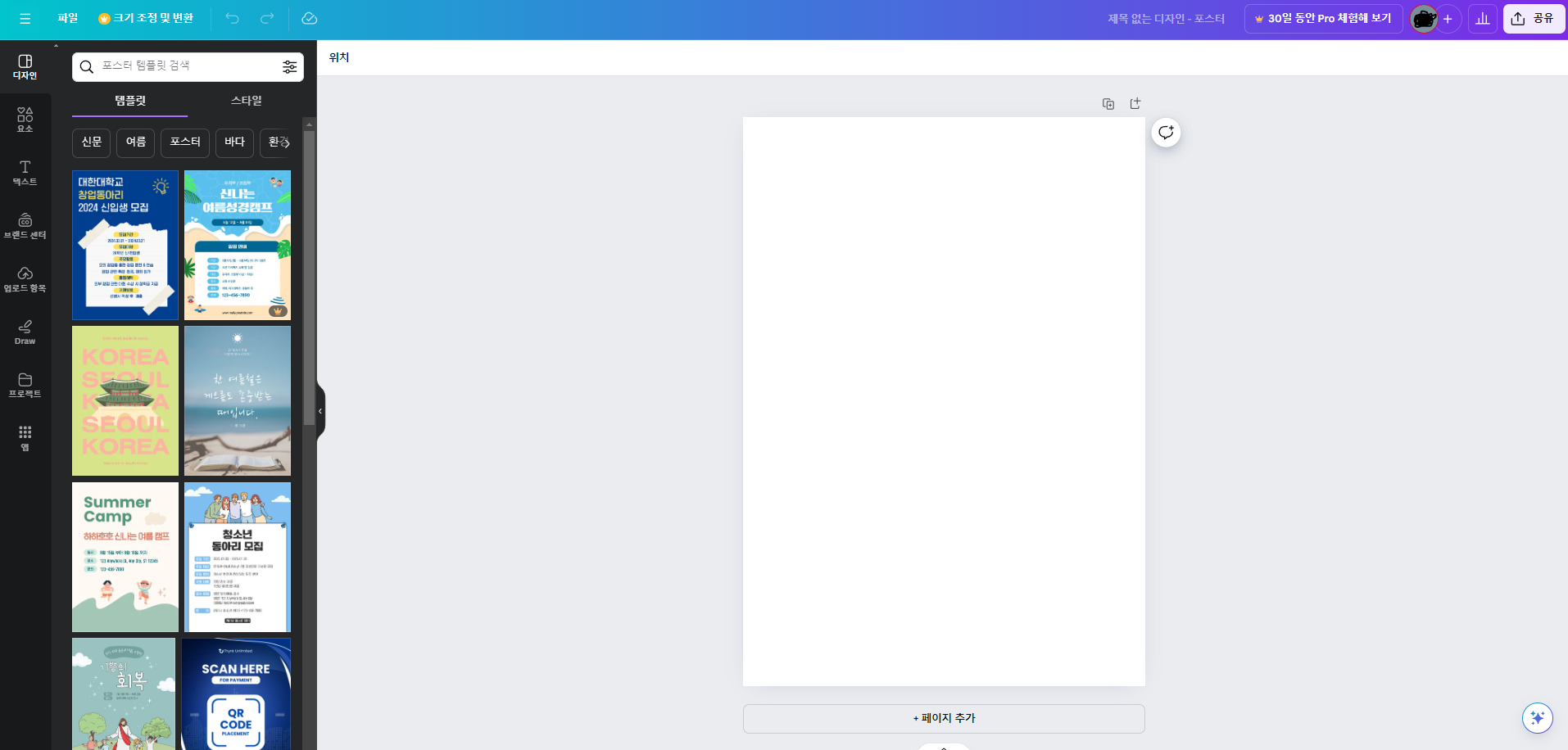 PPT, 카드뉴스, 포스터 등 디자인 카테고리를 선택하고 원하는 템플릿을 선택합니다.(저의 경우는 포스터로 진행하였습니다.)