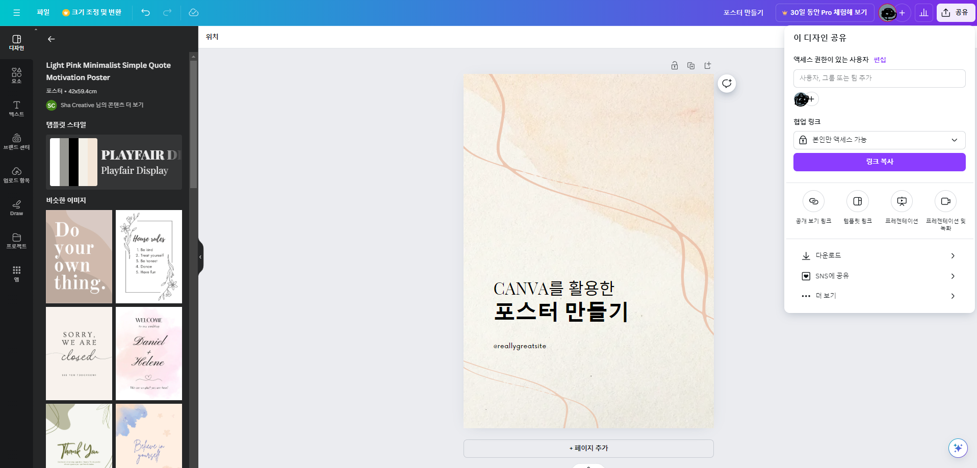 이상으로 캔바 사용법과 함께 간단한 소개를 마치겠습니다.