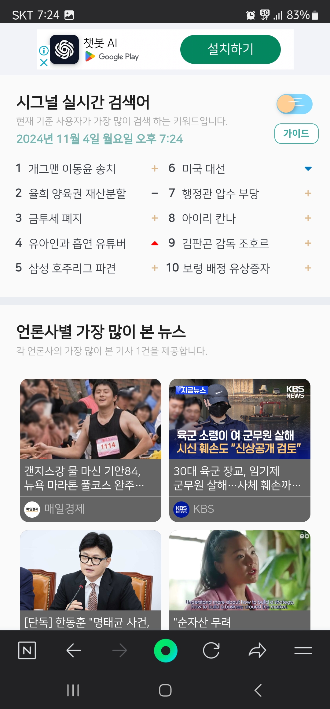 모바일에서 실시간 검색어 순위를 확인하실 수 있는 방법은 2가지가 존재합니다.